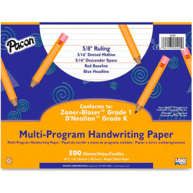 <B>Pacon Multi-Program Handwriting Paper, Grades K/1, 5/8" Rule, White, 500 Sheets/Ream</B><br><br>Rulings conform to Zaner-Bloser and/or D’Nealian handwriting programs. Bright tablet paper ruled on both sides with red baselines, blue dotted midlines and blue headlines. Has dotted line and skip space of 5/16" each. Conforms to D`Nealian Grade K and Zaner-Bloser Grade 1. Global Product Type: Art Paper-Composition; Paper Color(s): White; Assortment: N/A; Paper Weight: 16 lbs.