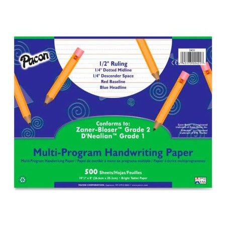 Pacon 2421 Multi-Program Handwriting Paper, 1/2-Inch Long Rule, 10-1/2 x 8, White, 500 Shts/Pk