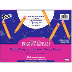 PACON 2424 Multi-Program Picture Story Paper, 1/2" Long Rule, 12 x 9, White, 500 Sheets/Pk