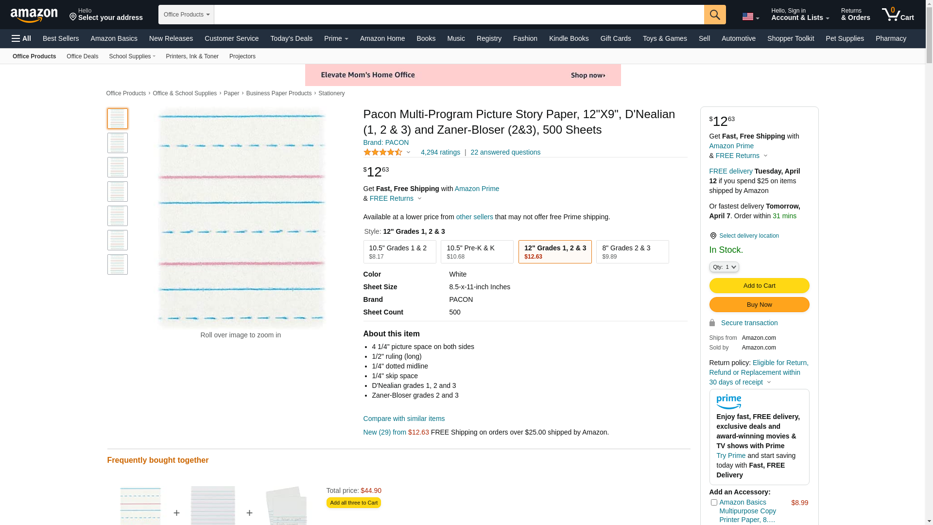 | Feature | Multi-program picture story paper. Ruled with a 4-1/4"" picture space on both sides. |
