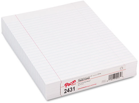 Pacon 2431 Composition Paper with Red Rule, 16 lbs., 8 x 10-1/2, White, 500 Sheets/Pack