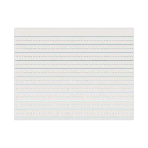 Letter-size practice paper is perfect for honing handwriting skills. Clear, white 30 lb. newsprint has light blue ruling on both sides. Sheets are ruled 3/4" the long way, and 3/8" dotted center line serves as a guide for controlled writing. Paper is recyclable.