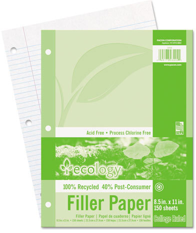 PACON CORPORATION ECOLOGY RECYCLED FILLER PAPER 150SH (Set of 24)