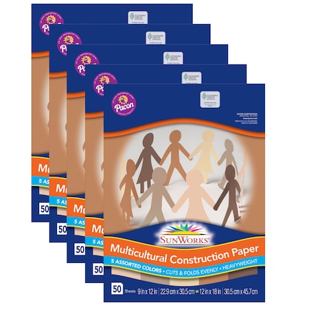SunWorks, PAC9509, Multicultural Construction Paper, Pack of 25, 50 Sheets/Pack, Sold As 1 Carton