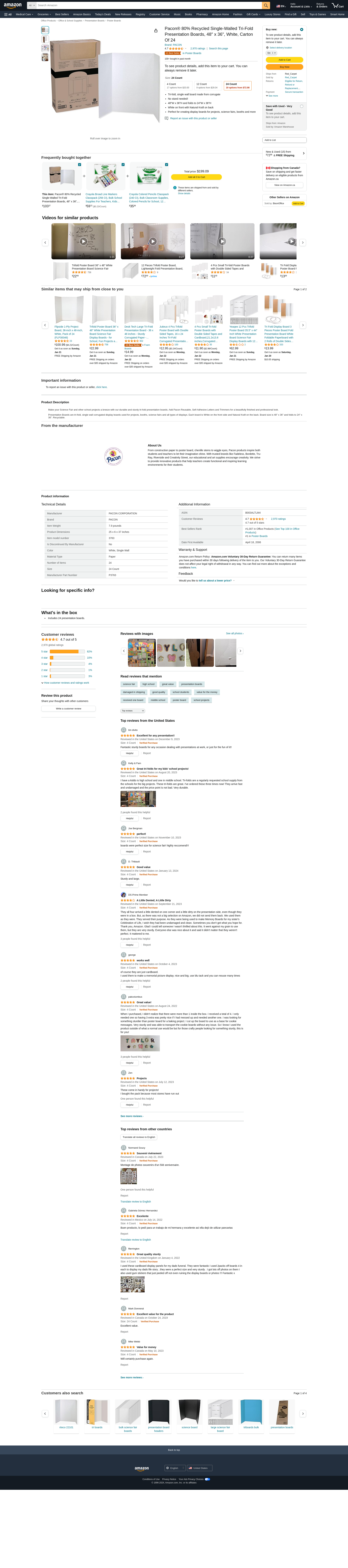 Pacon® 80% Recycled Single-Walled Tri-Fold Presentation Boards, 48" x 36", White, Carton Of 24