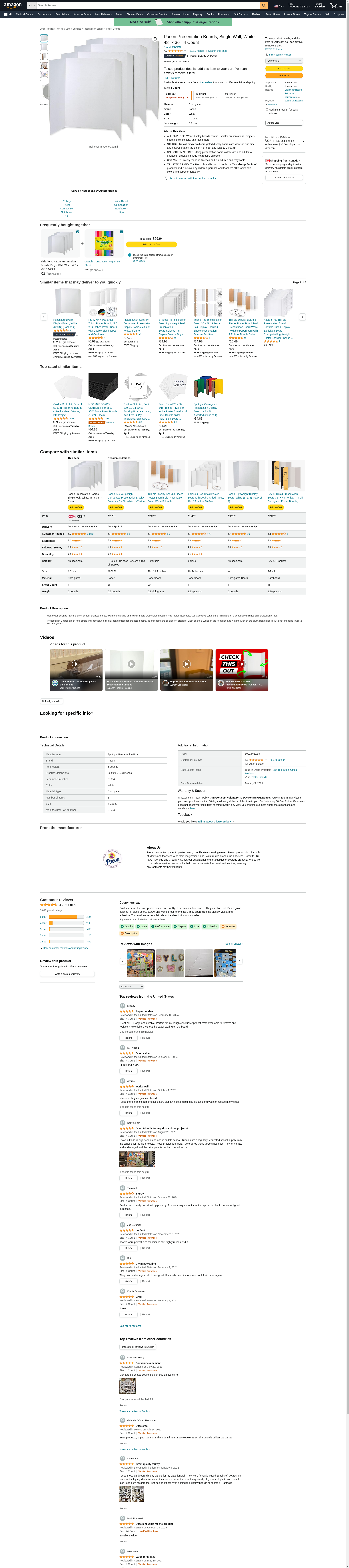 Pacon Lightweight Display Board, White (37634) (Pack of 4)
