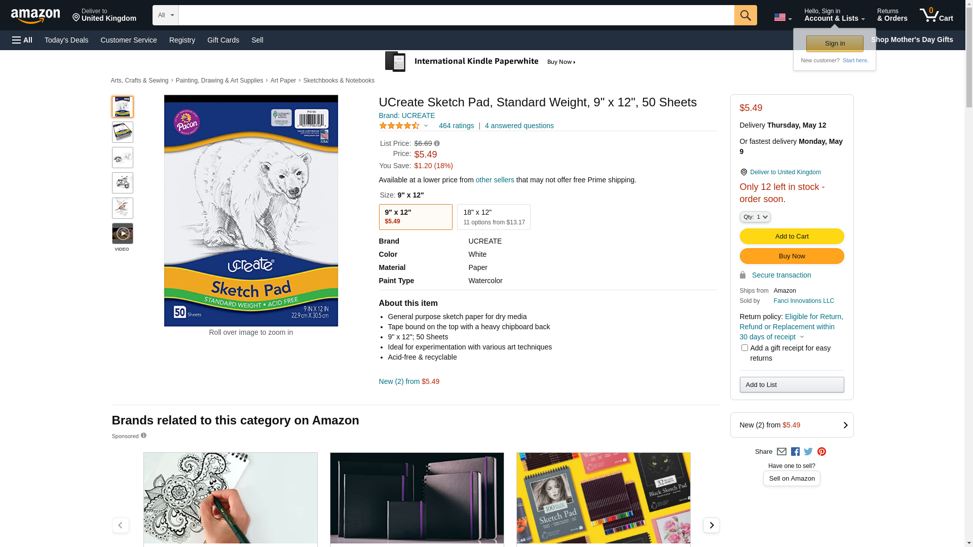 Pacon, 4746, UCreate Medium Weight Sketch Pad, 12 Pads/Pack