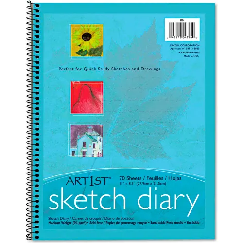 - The Art1st sketch diary features medium weight, sulphite drawing paper ideal for all dry media and quick sketches. This diary is excellently sized for portability, further aided by the spiral binding.