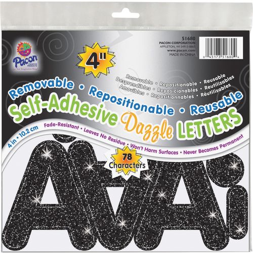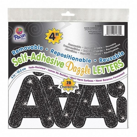 Pacon Self-Adhesive Letters, Black Dazzle, Puffy Font, 4", 78 Characters