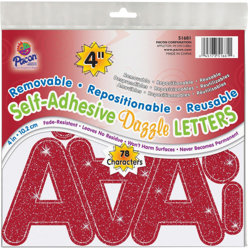 Pacon 4" Self-Adhesive Uppercase Letters, 78-Count, Red Dazzle (51681)