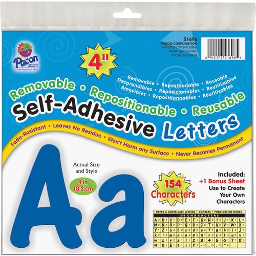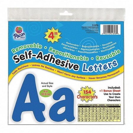 Pacon 154 Self-Adhesive Letter Set Character, 4-Inch, Blue per Pack