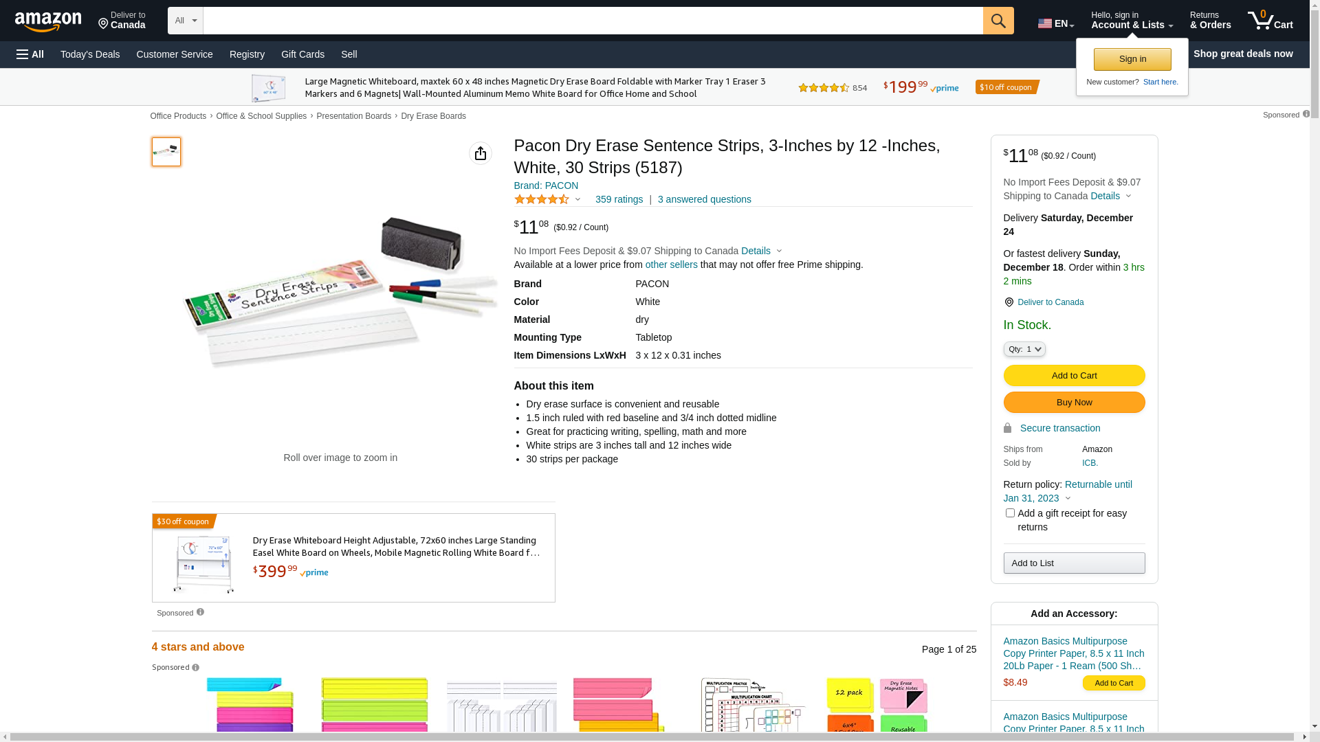 Pacon Dry Erase Sentence Strips, 3-Inches by 12 -Inches, White, 30 Strips (5187)