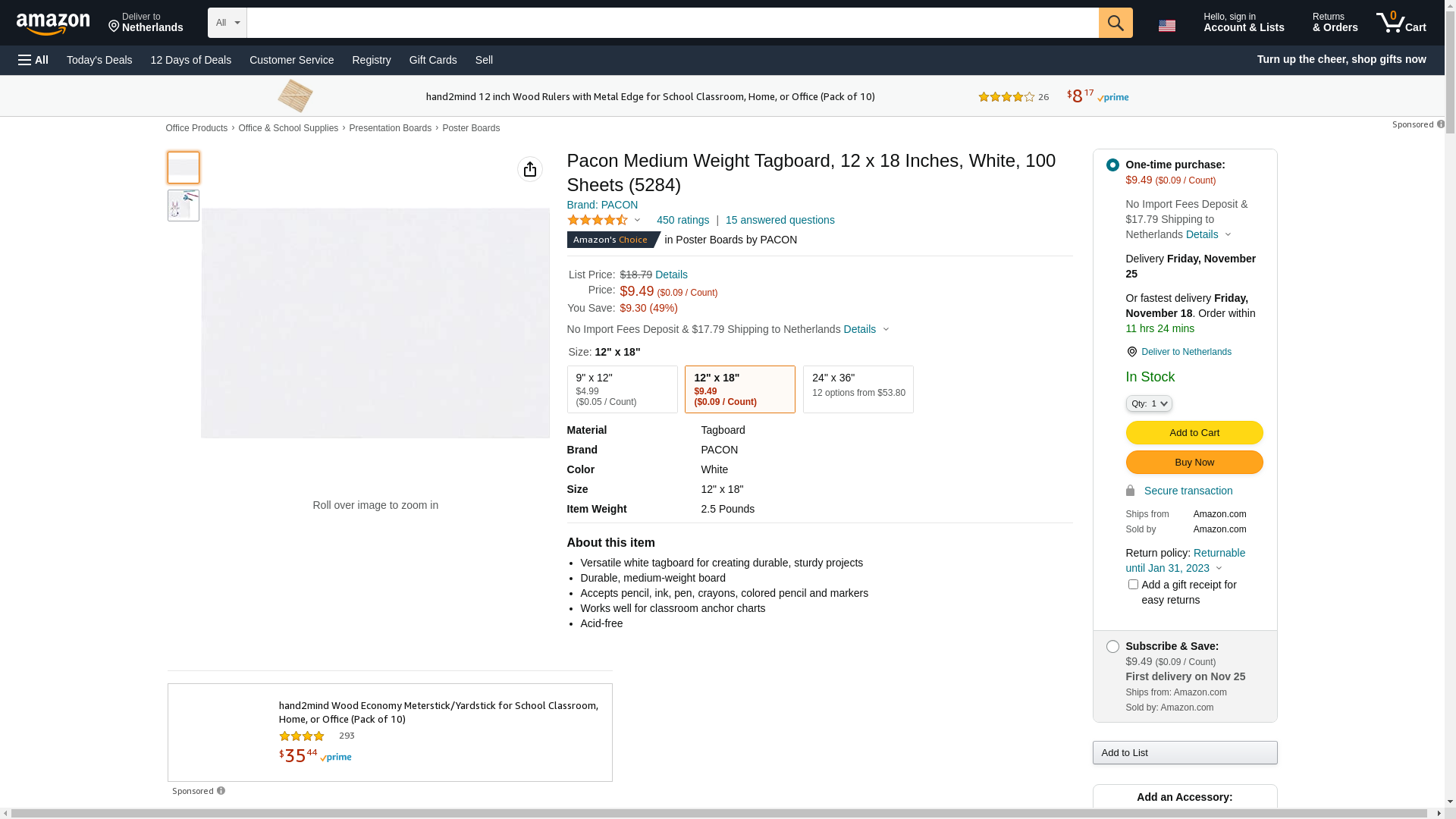 Paper,Tagboard,12" x 18",White,Package Quantity100