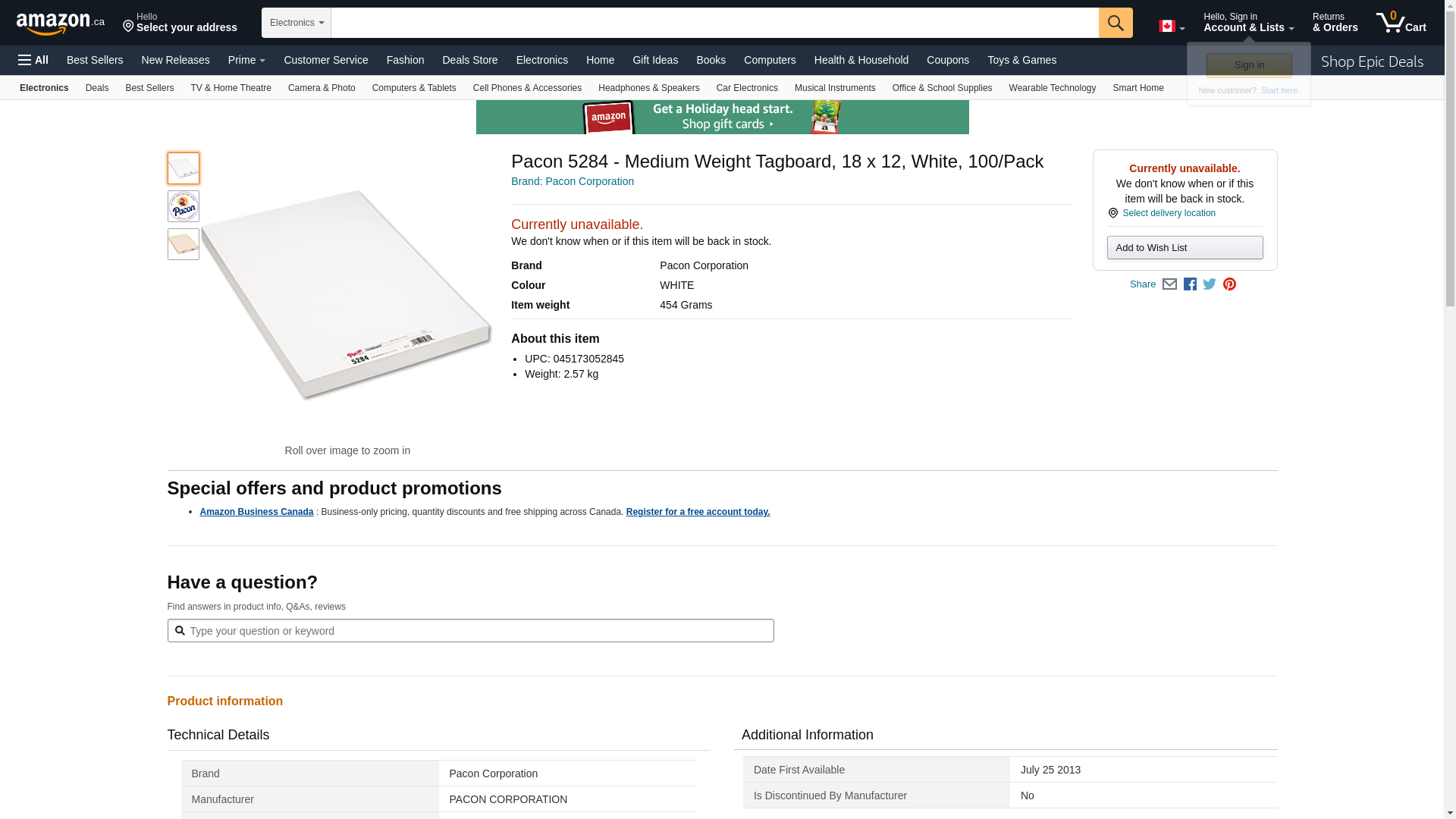 Pacon Tagboard BOARD,TAG,12X18,100PK,WE (Pack of8)