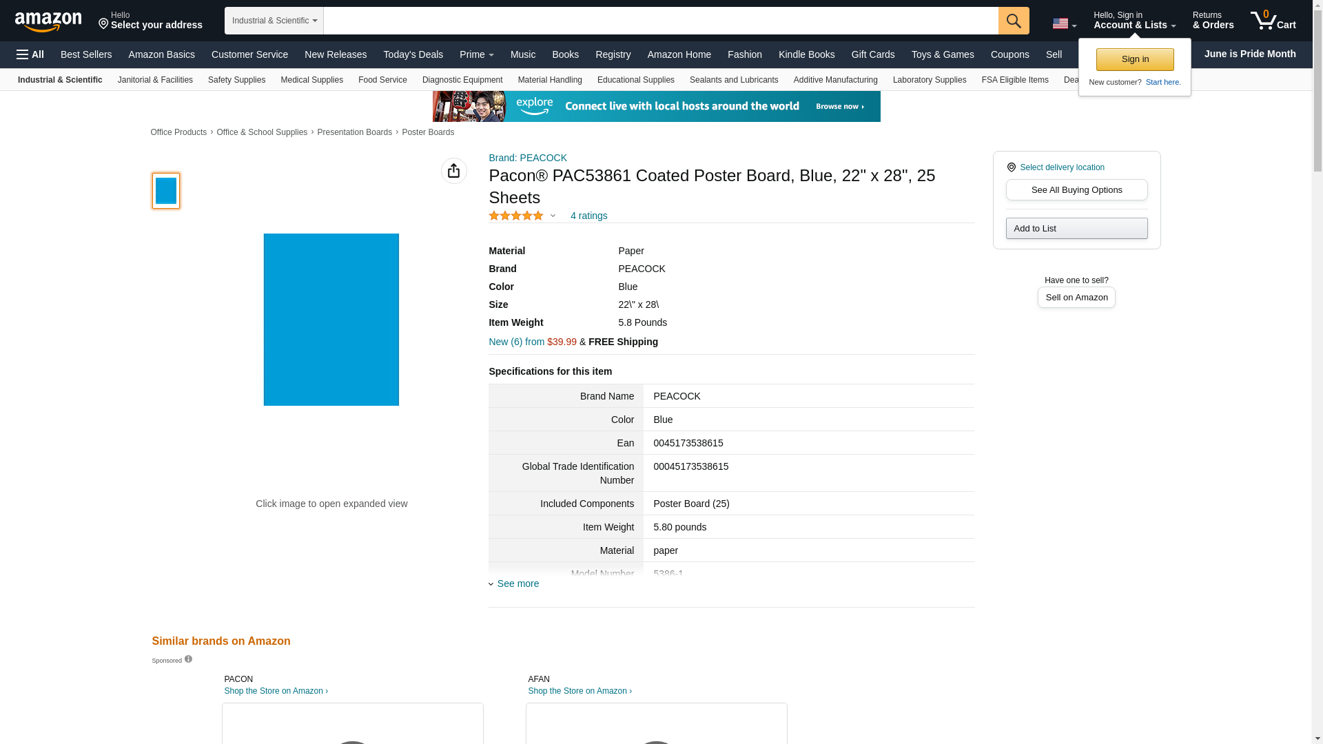 Pacon PAC53861 Coated Poster Board, Blue, 22" x 28", 25 Sheets