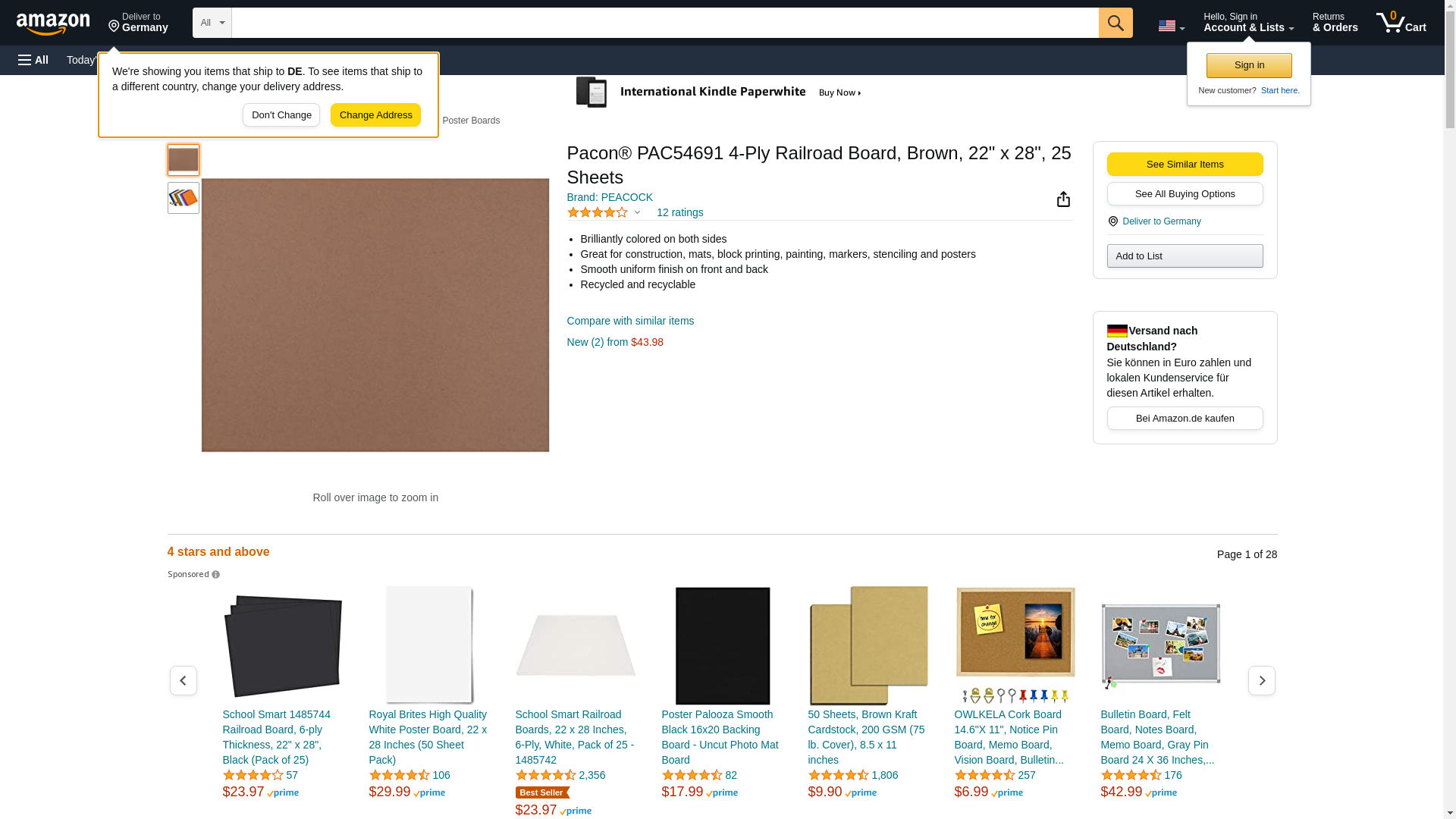 Pacon® PAC54691 4-Ply Railroad Board, Brown, 22" x 28", 25 Sheets