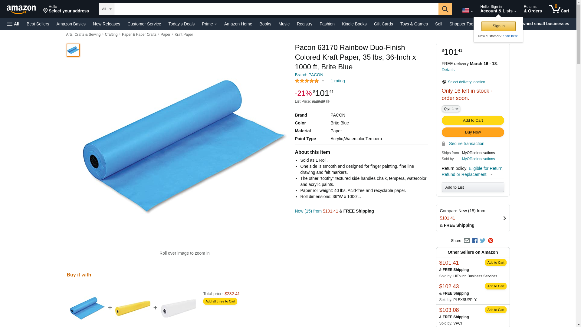 Lightweight Duo-Finish Kraft has two sides. The smooth side is ideal for felt pen, finger painting and fine line drawing. The other side has a "toothy" surface which handles chalk, tempera, watercolor or acrylic paints. The roll is individually cartoned and fits standard rack dispensers. Acid-free and recyclable. Roll measures 36" x 1000'.
