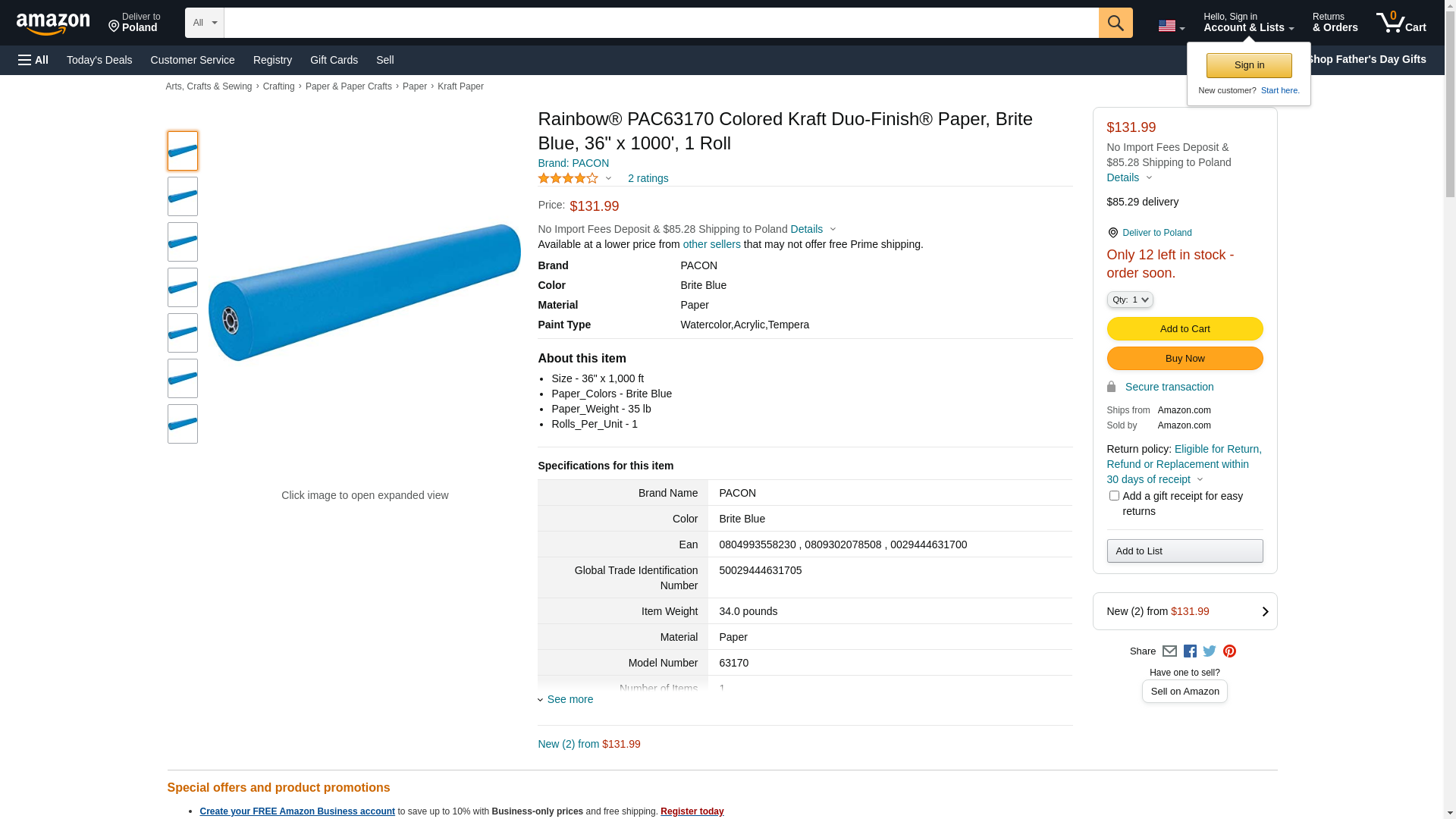 Pacon Rainbow Duo-Finish Colored Kraft Paper PAPER,36X1000,LT DUO,BE (Pack of2)