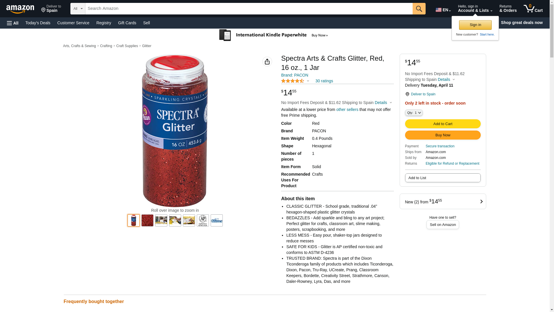 | Feature | Spectra\xc2\xae glitter in plastic shaker-top dispenser jar. |