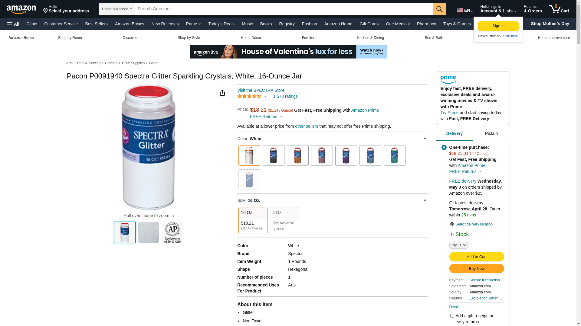 Pacon 91940 16 Oz. Spectra Glitter Jars, White