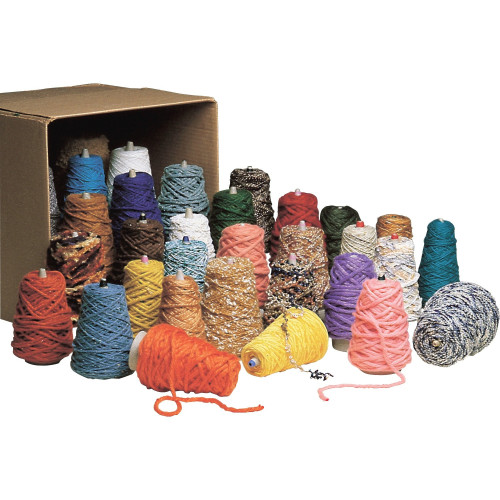 - Assortment includes a broad selection of sizes, colors (heathers and solids, bright and muted, along with rich earth tone shades), textures and styles of yarn (acrylic, wool, wool blends, and polyester), all on tangle-free cones for easy use and dispensing