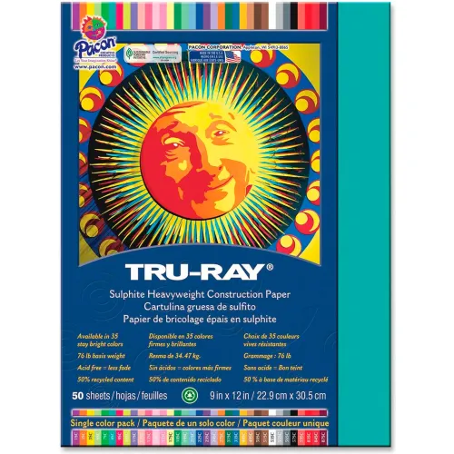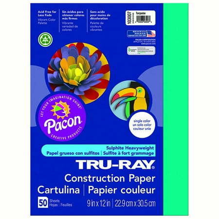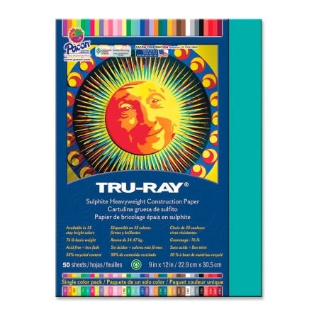 PACON Tru-Ray Heavyweight Construction Paper, Turquoise, 9" x 12", 50 Sheets (PAC103007)