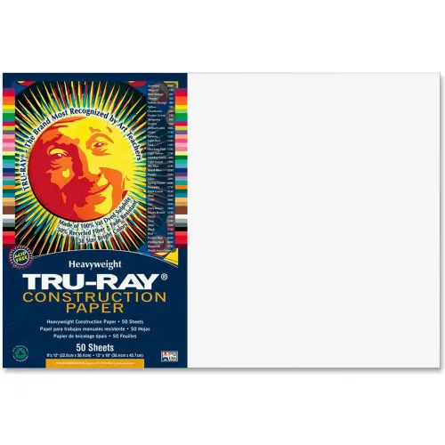 Pacon 103058 Tru-Ray Construction Paper, 76 lbs., 12 x 18, White, 50 Sheets/Pack
