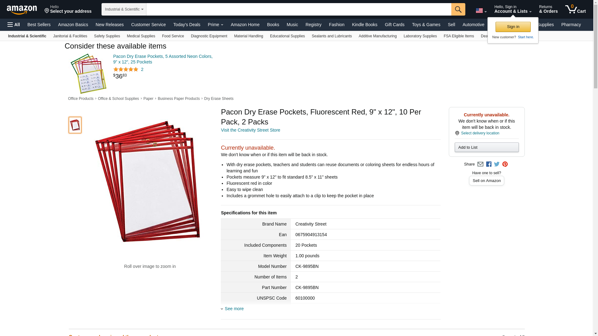 Pacon CK-9895BN Reusable Dry Erase Pockets, Fluorescent Red - Pack of 2