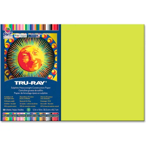 Pacon Tru-Ray Construction Paper, 76 lbs, 12 x 18, Brilliant Lime, 50 Sheets/Pack
