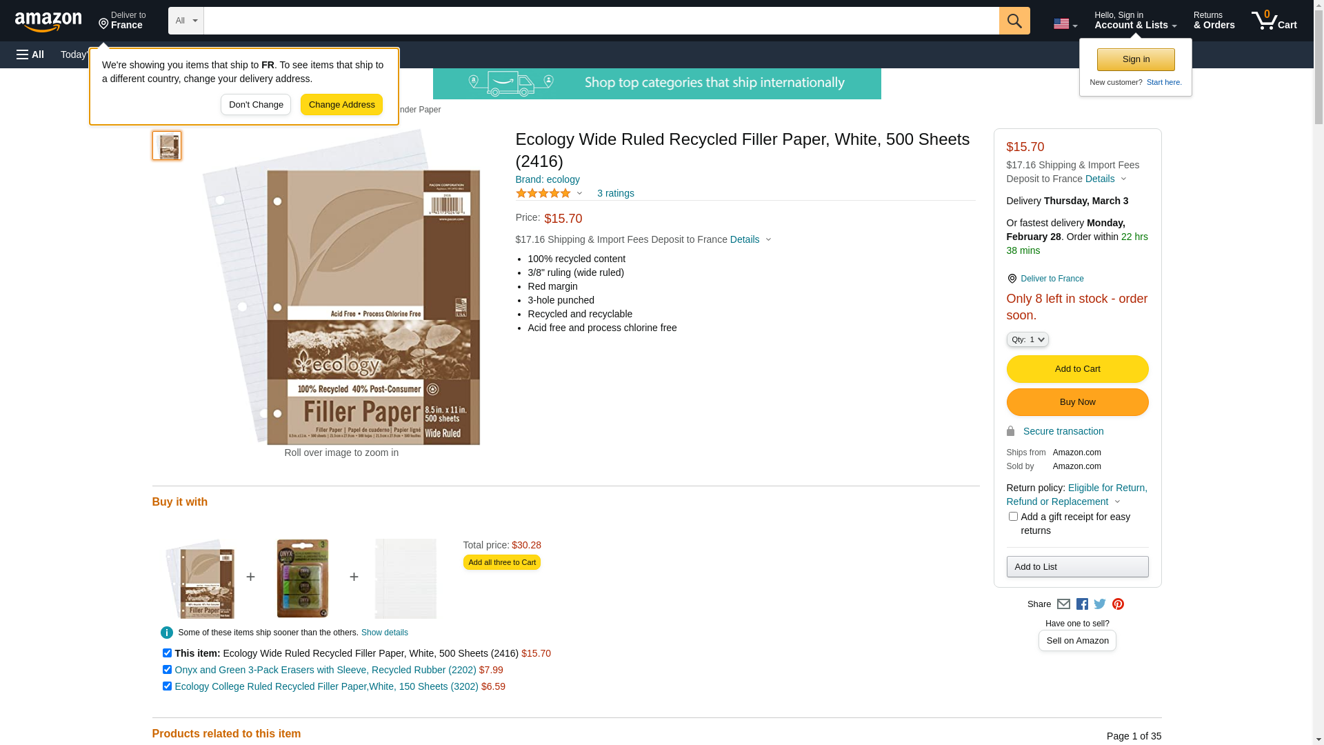 Ecology Wide Ruled Recycled Filler Paper, White, 500 Sheets (2416)