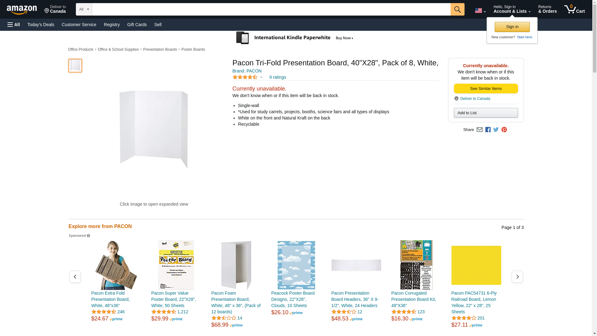 Pacon Tri-Fold Presentation Board, 40"X28", Pack of 8, White,