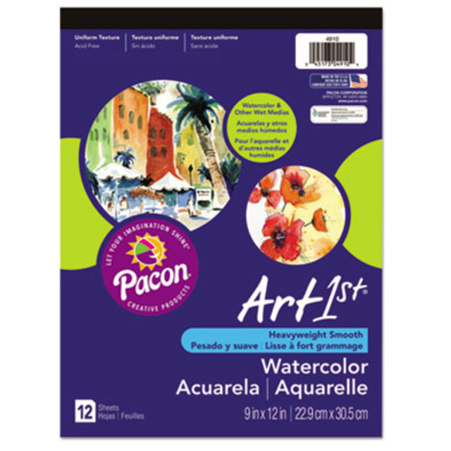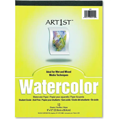 Pacon 4910 Artist Watercolor Paper Pad, 9 X 12, White, 12 Sheets