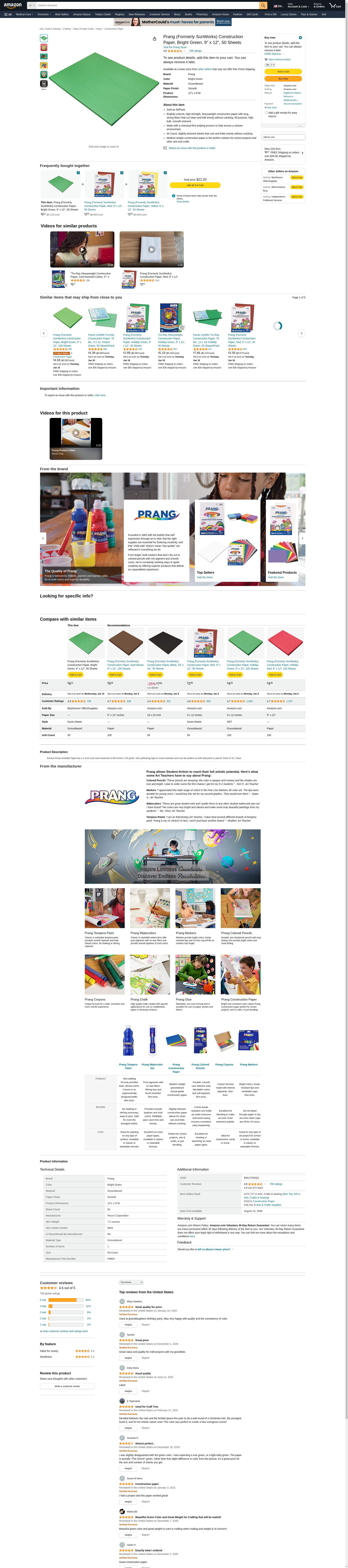Sunworks 9x12 Bright Green 50shts Arts & Crafts Construction Paper Paper Pac9603 Pacon Corporation