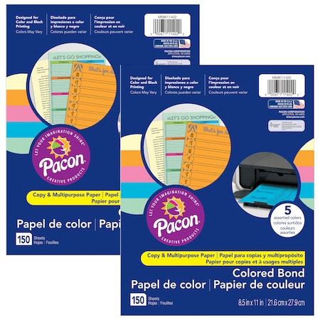 Pacon Multi-Purpose Paper, Assorted 5 Colors, 8-1/2" x 11", 150 Sheets