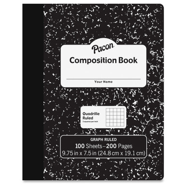 PACON Composition Book, Black Marble, 1/5" Quadrille Ruled, 9-3/4" x 7-1/2", 100 Sheets (PMMK37103)