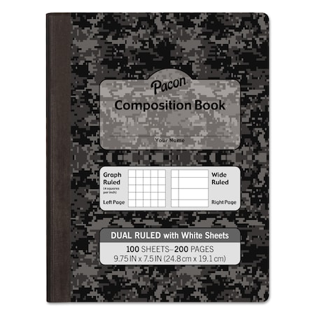 Pacon Dual Ruled Composition Book, Dark Gray, 1/4" Grid & 3/8" Wide Ruled 9-3 ⁄4" x 7-1⁄2", 100 Sheets