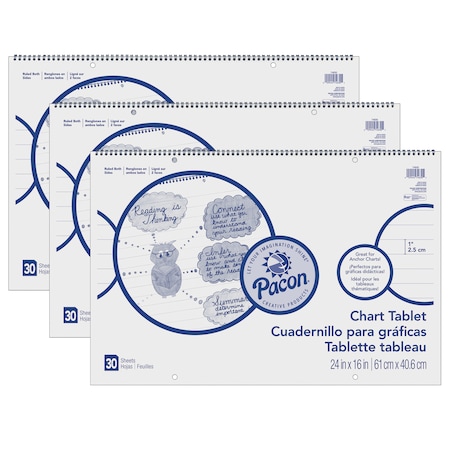Pacon 74630 Chart Tablets w/Cursive Cover, Ruled, 24 x 16, White, 30 Sheets (PAC74630)