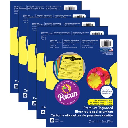 As an Amazon Associate, we earn from qualifying purchases. Premium Tagboard, Hyper Yellow, PK250 Pacon . P1000023 Gallery Attributes Brand name, Manufacturer name, ManufacturerPacon Attribute004+ Years Attribute01Hyper Yellow Attribute0265 Lb. Tagboard Attribute03250 sheets Attribute04Grade PK+ Attribute05United States AttributeKey00Recommended Age AttributeKey01Color AttributeKey02Material AttributeKey03Includes AttributeKey04Recommended Grade AttributeKey05Country of Origin (subject to change) Category, CategoryL1Office Supplies, Furniture & Breakroom Supplies CategoryL2School and Library Supplies CategoryL3Arts & Crafts DimensionUnitinch GraingerSkuPAC1000023-5 Extra Product NamePremium Tagboard, Hyper Yellow, PK250 WeightUnitlbs moq, multiple, tierMinQty11 MPNP1000023 noShipToNo qtyInStock0 SKUG4856585 tierPrice131.89 urlhttps://www.zoro.com/pacon-premium-tagboard-hyper-yellow-pk250-p1000023/i/G4856585/ Distributor offers SellerSKUMOQIn stockMultiplePrices ZoroG4856585111 @ $31.89