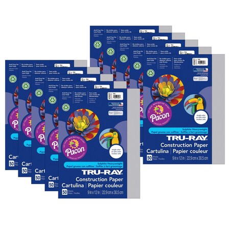 Pacon 103027 Tru-Ray Construction Paper, 76 lbs., 9 x 12, Gray, 50 Sheets/Pack