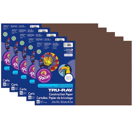 Fade-Resistant Construction Paper, 12x18, 76lb , Brown Dk, Dark Brown (Pack of 50)