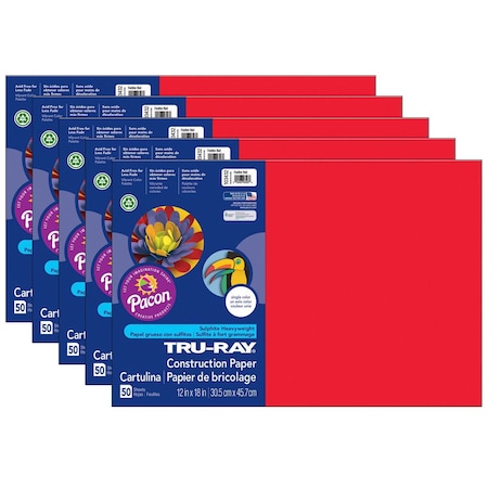 Pacon Tru-Ray Construction Paper, 76 lbs., 12 x 18, Festive Red, 50 Sheets/Pack PAC103432
