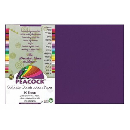<B>Pacon Peacock Sulphite Construction Paper, Rigid, 12 x 18, Purple, 50 Sheets</B><br><br>Enjoy vivid, clean colors that withstand sunlight and resist fading. Long, strong sulphite fibers provide rigidity needed for projects so that they stand up without support. This heavyweight paper can be folded, scored and curled without cracking. Acid-free. Global Product Type: Art Paper-Construction Paper; Paper Color(s): Purple; Assortment: N/A; Paper Weight: 76 lbs.