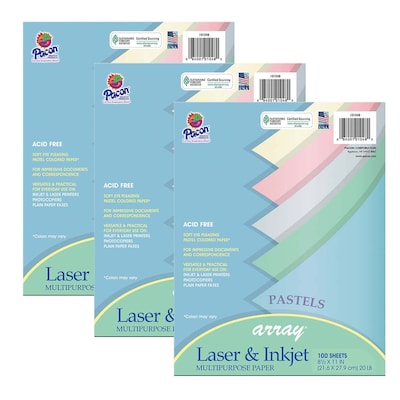 Pacon Array Computer Paper, 8.5-inch x 11-inch, Assorted Pastel, 100 Sheets/Pack, 3 Packs (PAC101048-3)