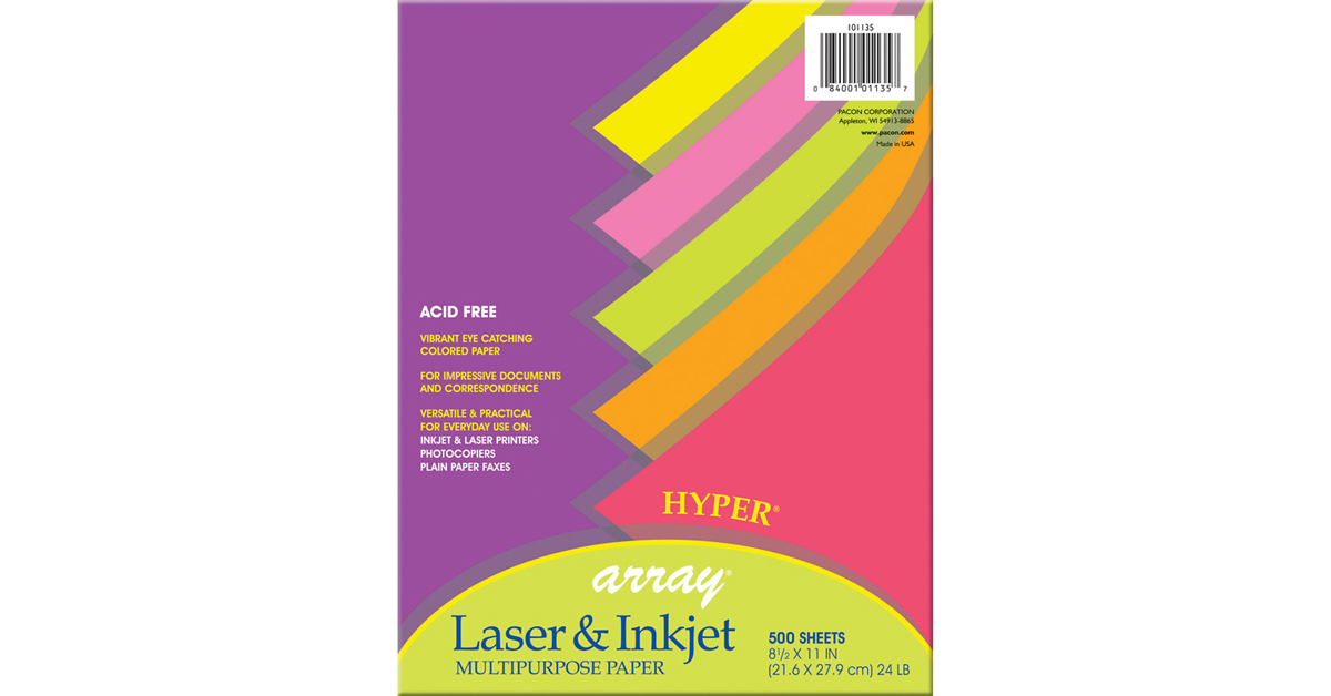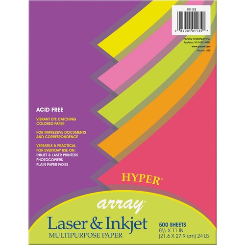 Pacon 101135 Array Colored Bond Paper, 24Lb, 8-1/2 X 11, Assorted Hyper Colors, 500 Shts/Rm