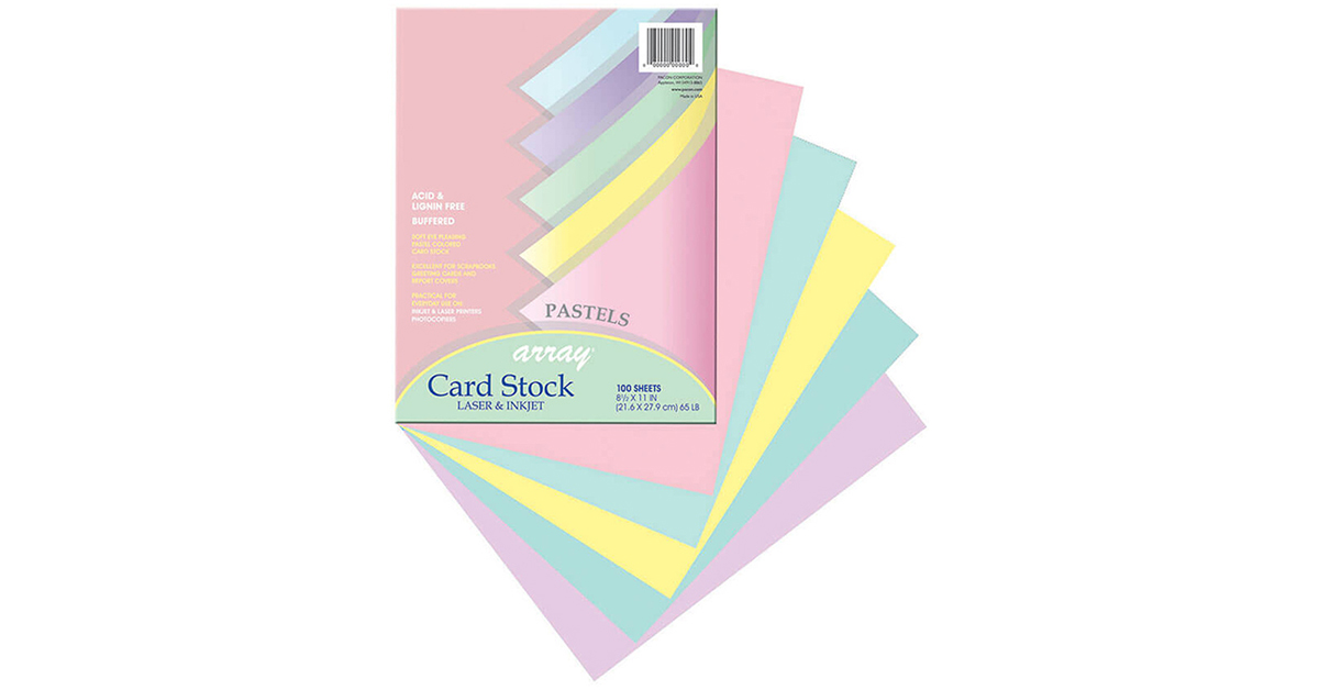 Pacon 101315 Array Card Stock, 65 lb, Letter, Assorted Pastel Colors, 100 Sheets/Pack