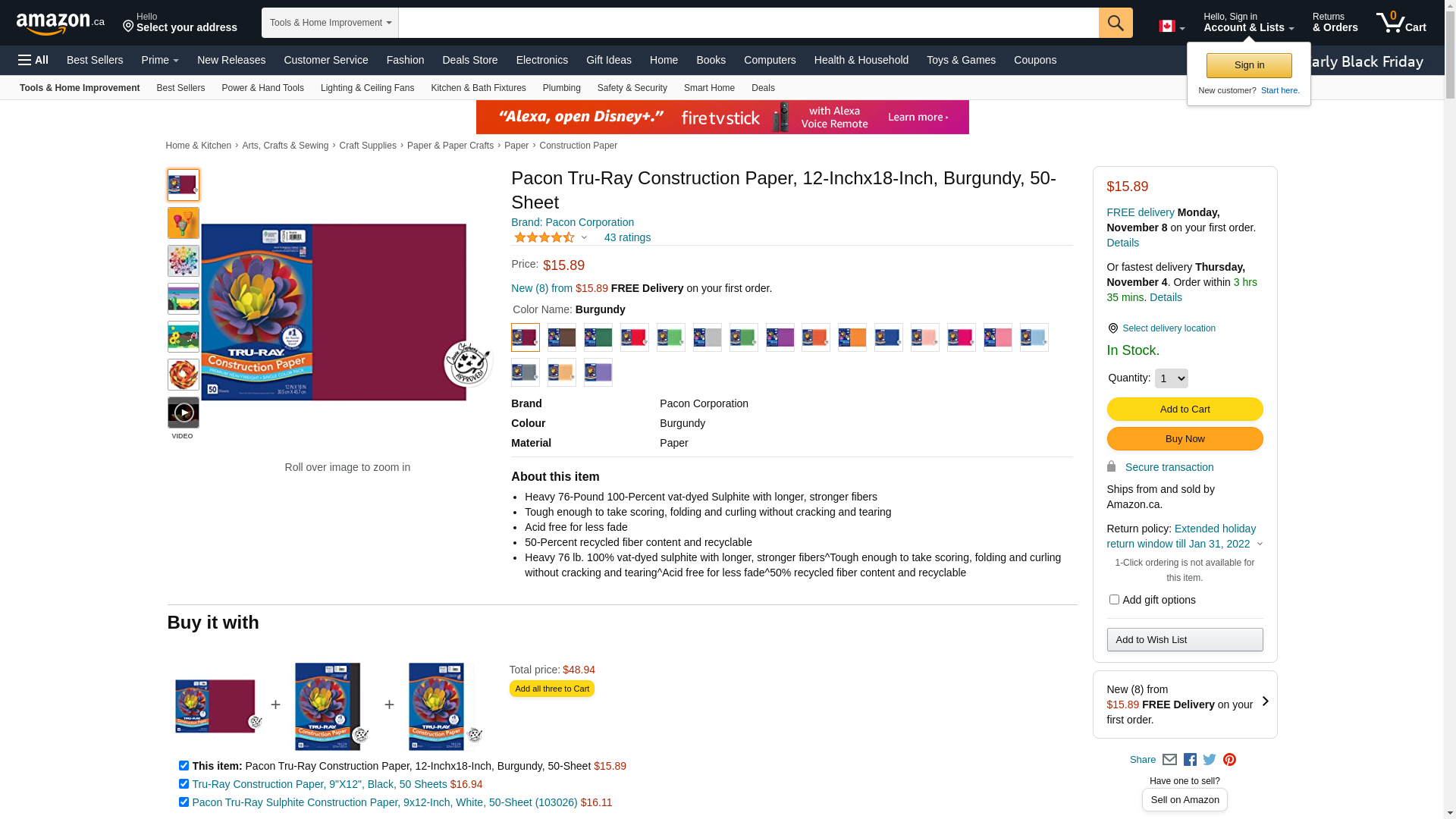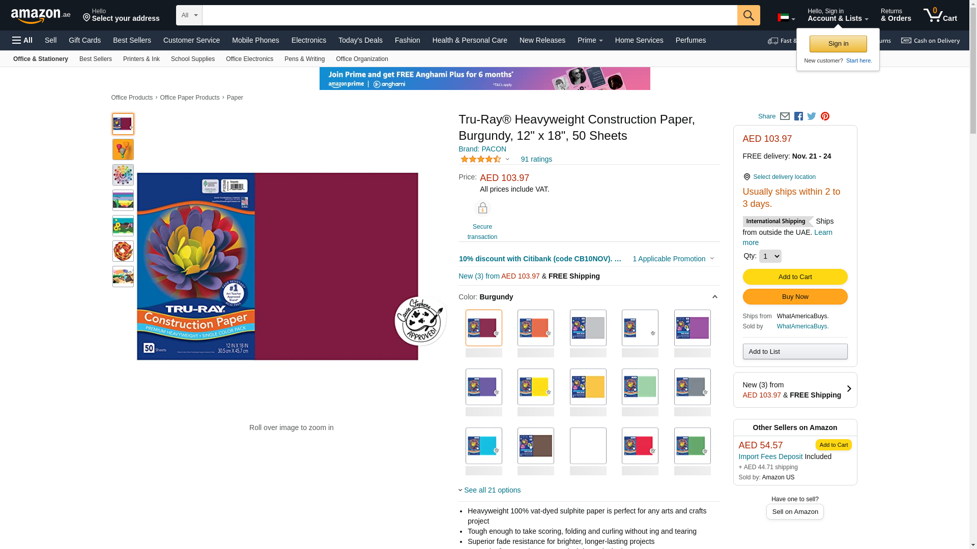 | Feature | Heavyweight 100% vat-dyed sulphite paper is perfect for any arts and crafts project |