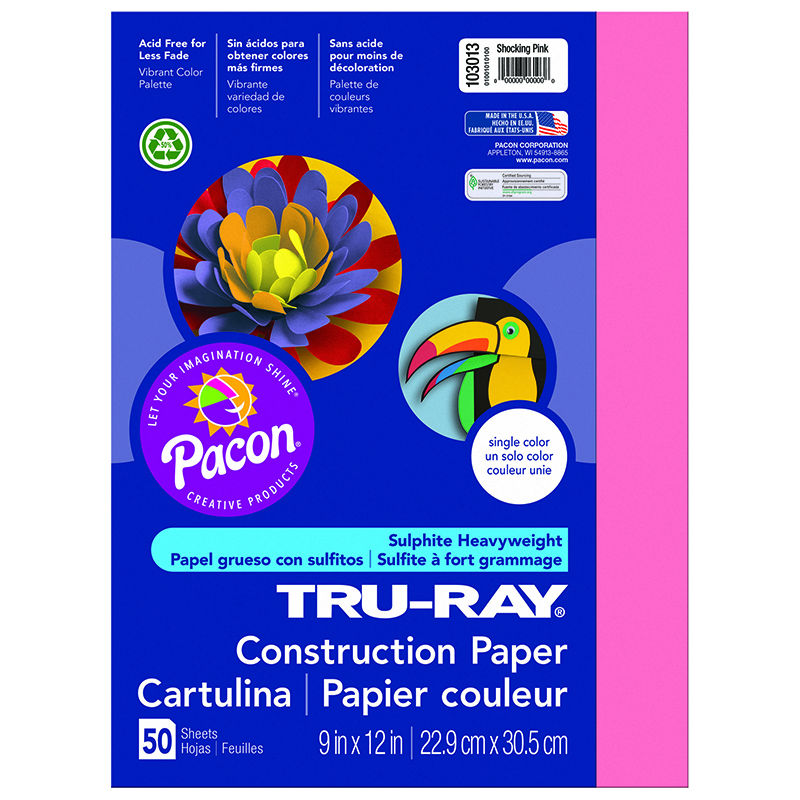 Pacon Tru-Ray Construction Paper, Shocking Pink, 9" x 12", 50 Sheets Per Pack, 5 Packs