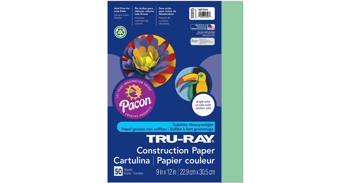 Pacon PAC103015 Tru-Ray Construction Paper, 9" x 12", Light Green, 50 Sheets
