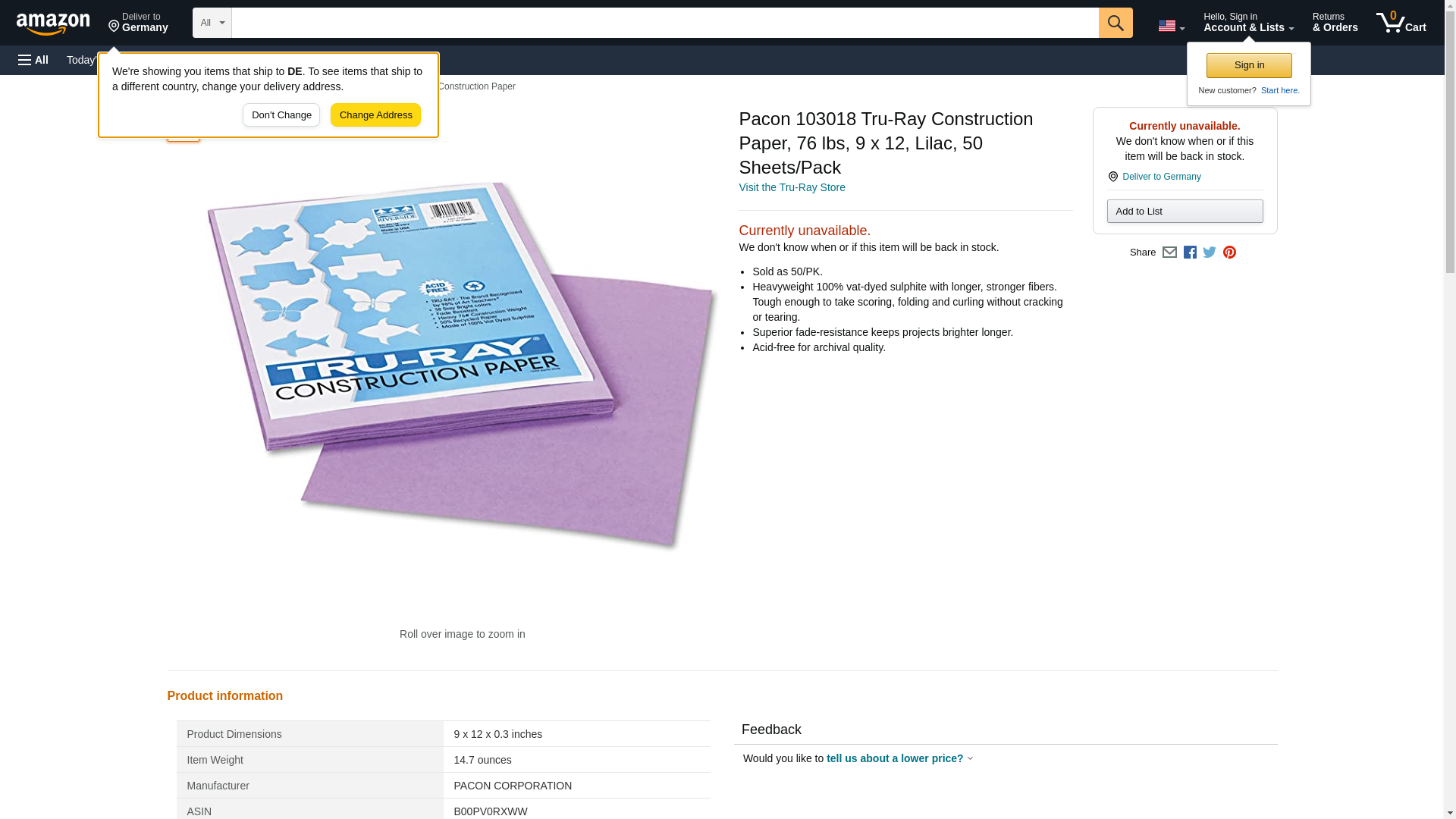 PAC103018 Features: -Sheets per unit: 50. -Quantity: 50 per pack. -Made in USA. -Paper color(s): Lilac. -Sheet Size (W X H): 12 In X 9 In. -Category: Crafting. Country of Manufacture: -United States. Dimensions: -11.9'' D, 76 lbs. Overall Height - Top to Bottom: -0.3". Overall Width - Side to Side: -9". Overall Product Weight: -0.93 lbs.