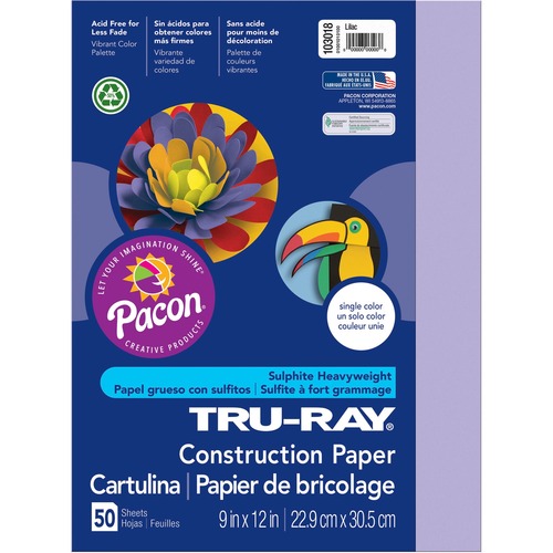 Pacon 103018 Tru-Ray Construction Paper, 76 Lbs., 9 X 12, Lilac, 50 Sheets/Pack